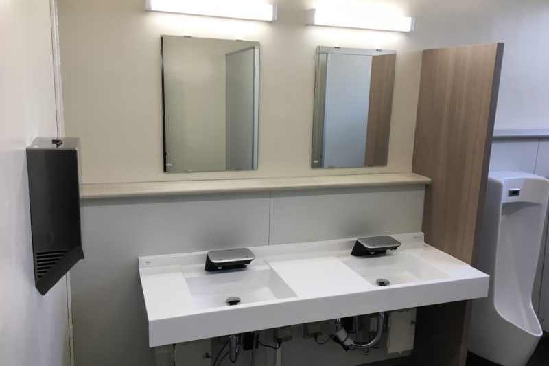 単にトイレを「綺麗にする」だけでなく、「衛生的な」トイレを重視しました。手洗いの自動化、和便器の洋式化(ノロウイルス対策...