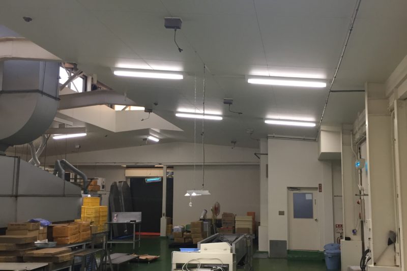 食品加工現場の為、LEDは清掃のしやすさを考慮してカバー付の器具を選定し、飛散防止・防虫対策に加え衛生管理にも配慮した計...
